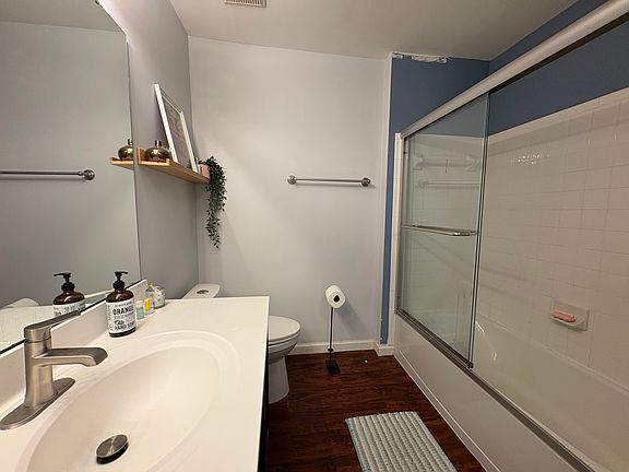 Fabulous end-unit townhome with one-car garage featuring 4 bedrooms, 2.5 baths. Updated stainless-steel appliances and center island, open to a bright living and dining area. Upper-level bedrooms with LVP flooring. The large primary suite includes an ensuite bath with dual sinks, soaking tub, and separate shower. The lower-level rec room offers full-size windows, LVP flooring, half bath, the 4th bedroom and walk-out access to the rear yard. Relax on a huge deck that goes back to a peaceful common area.