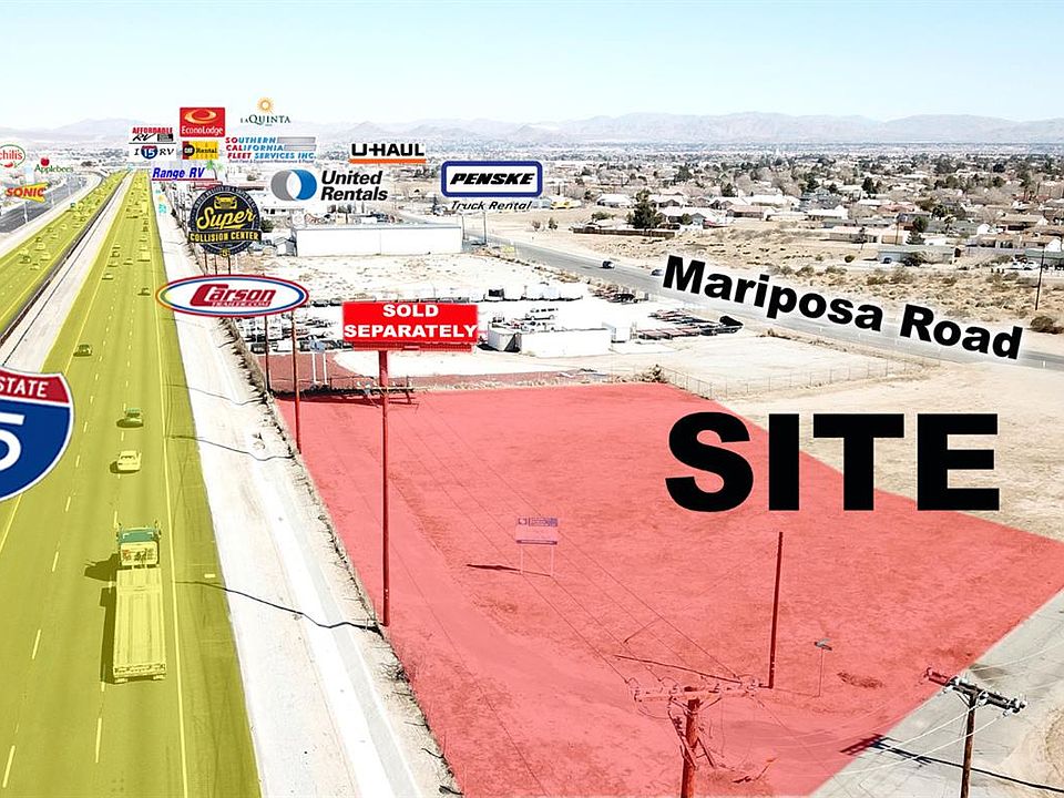 0.92 Acres of vacant land along the I-15 Freeway & Mariposa Road. Over 250 feet of freeway frontage. Excellent Visibility. Within the City of Hesperia's Enterprise Zone. Zoned Commercial. Adjacent lot also available.Easy access to Bear Valley Road. Utilities at site. Purchase price is for the land only without the billboard sign.