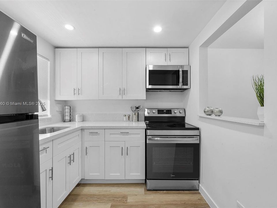 This modern unit on the second floor,featuring one bedrooms and one bathroom. It is completely updated and includes a renovated kitchen with custom cabinetry, with quartz countertops, brand new appliances and recessed lighting. The renovated bathroom with elegant mirrors. Soundproof, waterproof luxury vinyl flooring. A/C and electrical systems, in excellent condition.Convenient parking outside the entrance. Al amenities include pools, sauna, billiards, exercise facilities, free bus transportation to Shopping malls. Vibrant 55+ community a few miles from Shopping snd major expressways. Seller financing available