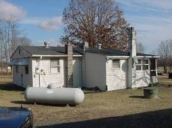 One story vinyl sided, 1147 sq ft 2 BR*1BA mini farm with 4.10 acres and detached 3 car garage. 3 wells