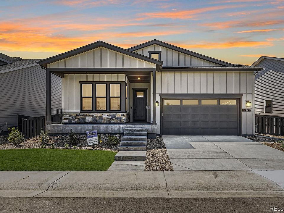 Beautiful single story home in the desirable Solstice Community by Shea Homes.  Solstice is surrounded by Chatfield State Park on 3 sides of the community and acreage parcels on the 4th side. This single-story home with finished basement has 3 bedrooms, 3 baths, 2-bay garage with storage, fireplace on the main, wet bar in basement and covered patio.  Design finishes include Luxury Plank flooring in Pasadena Oak, MSI Cashmere Taj engineered stone countertops, and Yorktown/Gilmore Maple Eagle Rock cabinets.  The Mirabelle Metropolitan Districts provide various services to the property and in addition to the estimated taxes, a $40 per month operations fee is imposed. This home comes with for landscaping and fencing.