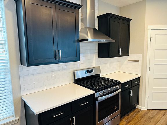 Soaking tubFormal dining roomUpstairs laundry roomOversized bedroomsStainless appliancesSlab quartz countersAir conditioning