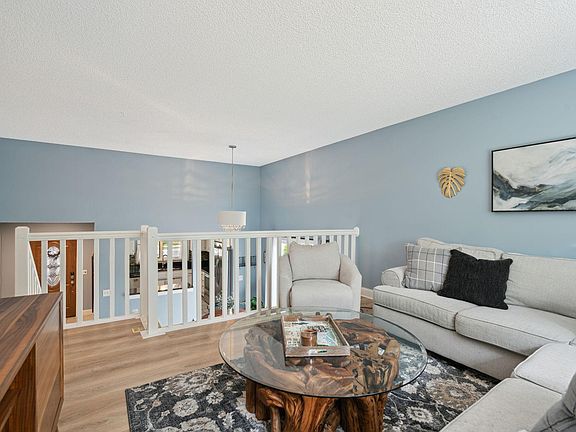 This beautiful 4-bedroom home is situated on a private lot, overlooking walking trails & a wooded pond area. Open & airy, the vaulted ceilings lead you from the entry way, updated kitchen w/ granite counters, tiled backsplash, breakfast island, & SS appliances, dining room w/access to the wrap around deck & to the LL family room or the upper-level living room. The primary bedroom offers a walk-through full bath & walk in closet. The 2nd bedroom is also on the upper level. 2 bedrooms, a 3/4 bathroom & a cozy family room w/ a stone faced gas FP & walkout to the backyard are located on the 3rd level. The open laundry room space offers convenience & accessibility. A flex room provides a space for storage, a craft room or workshop! New furnace, A/C, sump pump, gutters, deck, tile floors, white woodwork, doors, & trim in the last 5 yrs. Nestled off Elm Creek Parkway, this home is conveniently located near highway 169, parks, restaurants & shopping. Get ready to make this one your new HOME!