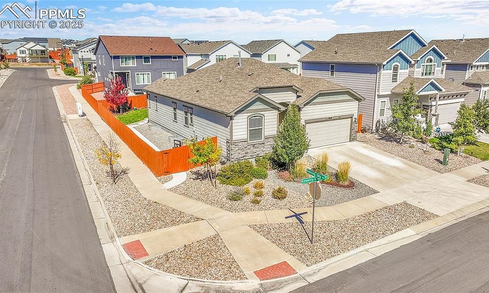Stunning 5-bedroom, 4-bath home on a beautifully landscaped corner lot in Meridian Ranch! Open-concept kitchen with gas stove, center island, and pantry flows into the living areas. Main level includes a large formal dining room that could double as a home office, plus a front bedroom with full hall bath. Elegant primary suite features a double-sided fireplace connecting the bedroom and spa-like bath, gorgeous tile, and walk-in closet. Upstairs has brand-new carpeting, while the finished basement offers a huge family room, a bedroom with attached bath and walk-in closet, two additional bedrooms with shared hall bath, and a large storage area. Enjoy comfort year-round with central air conditioning, and relax outdoors on the large concrete patio with wired gazebo and 4-person hot tub. 2-car attached garage, corner lot, and professional landscaping add convenience and curb appeal. Meridian Ranch amenities include pools, fitness & recreation centers, golf course, parks, and trails. Close to shopping, dining, and Falcon schools—this home is the perfect blend of style, function, and family-friendly living!