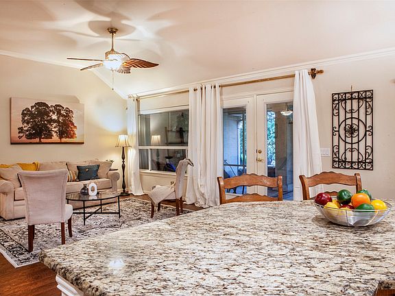 Fresh paintPrivacy bushesBright homeAmple shadeLarge windowsLarge screened patioFresh landscaping