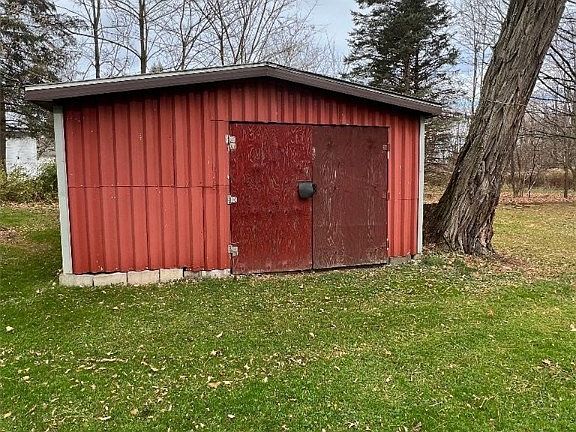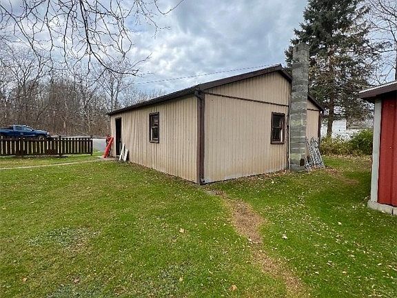 This home features 3 bedrooms and one bathroom. It also has first floor laundry and a first floor bedroom. There is a formal dining room. living room with wood burning stove to keep heat bills down, and an enclosed back porch to enjoy year round! There is plenty of garage space with a two car garage and there are also two outbuildings for storage. The house sits on a beautiful 1.5 acres lot outside the village for low taxes!