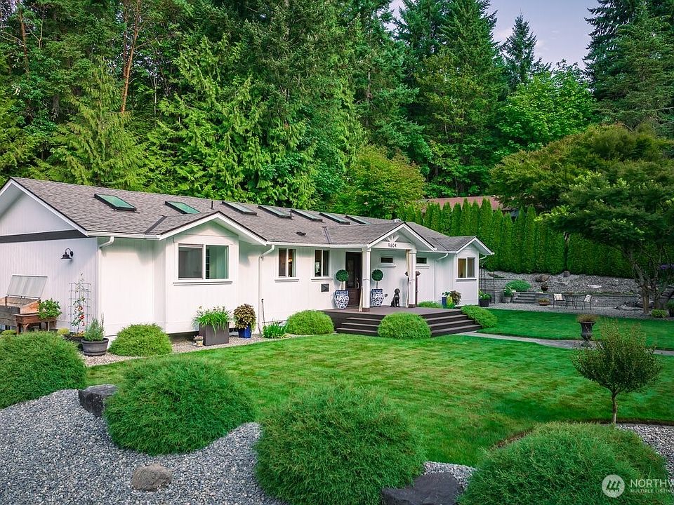 In-town, like-new construction Gig Harbor home, walkable to restaurants & shops. This 3BR/2BA single-story was fully rebuilt in 2017, featuring vaulted ceilings, chef’s kitchen, A/C, & modern upgrades. A 2023 master suite addition features skylights, custom walk-in closet with interior/exterior access, & 6-pc bath with in-suite laundry. Both baths have heated tile floors. Open living with built-ins, enhanced lighting, & a gas fireplace-all wheelchair accessible. Detached finished garage, flat driveway for 4–6 cars, plus extra parking. Landscaped corner lot with patios, gardens, fire pit, & waterfall feature, offering privacy on three sides & peek-a-boo water view from the porch. Perfect turn key primary living or short term rental downtown.