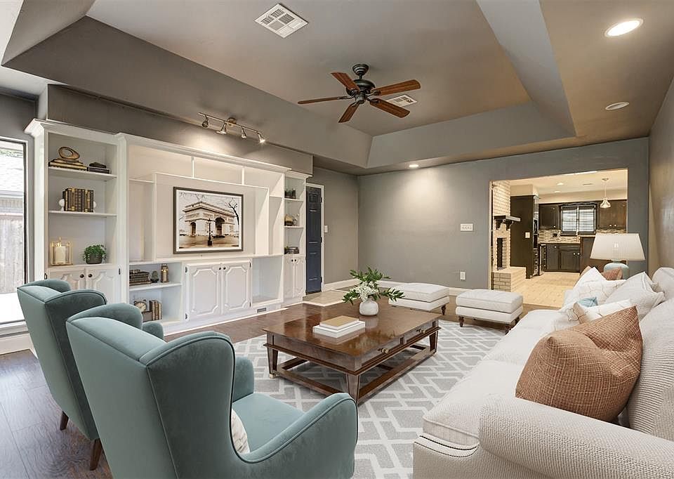 Manicured landscapingCovered front porchCustom built-in entertainment centerLarge fully fenced backyardLarge dining areaMature treesClassic brick exterior