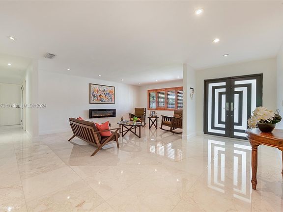 Welcome to this beautiful and spacious, pool home with 2-car garage, featuring impact windows and doors, marble flooring and plantation shutters throughout the social areas. Enjoy pool and garden views from the open kitchen, complemented by contemporary pure wood cabinetry, stainless steel appliances, and quart countertops. The 4/3 bedroom wing offers two en-suite, including an expansive primary bedroom with dual walk-in closets complete with built-ins, bathroom with double sinks and personal vanity, natural stone countertops and whirlpool tub/shower combo. Other features include a generous-size front porch, fenced backyard, shed, security cameras, HDMI-wired for cable, internet and security cameras. Located minutes to Baptist Hospital, great schools, Dadeland Mall, restaurants and more.