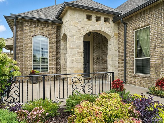 Immaculately kept High End Villa in the small Gated Community of Spicewood Villas in South Tulsa. This custom one owner home has been meticulously maintained and has the same amenities you would expect from a million dollar home. Featuring 10ft Ceilings down, 9ft Ceilings up & impressive 8ft doors throughout. Gorgeous hand scraped hardwoods, extensive crown moldings & luxury finishes. Great room featuring a floor to ceiling fireplace opens to Dining room. Chef’s Stainless kitchen with double ovens, gas cooktop, nook, pantry & eat at bar. The primary suite offers built-ins & an amazing bath with jetted tub, separate shower, double vanities, Toto Bidet toilet, huge closet with double dressers and seasonal rods. Large laundry with sink, closet & ironing board connects to primary closet. 2nd bedroom down has Private Bath. Custom built safe room is located under staircase. Upstairs has a Study, Flex/craft room & game room (which could be a 4th bedroom) with a closet. 3rd bedroom up with a pullman bath & oversized closet. Huge walk-out attic provides extra storage or an expansion area. Oversized 3 car garage with epoxy flooring, inside spigot & built-ins. Whole home generator installed in 2023. New roof/Gutters in 2025. Covered wrap around patio overlooking turfed back yard. Professionally landscaped home with full privacy fence. Conveniently located at 101st & Mingo near Shopping, Restaurants, Medical, Creek Expressway & Golf.