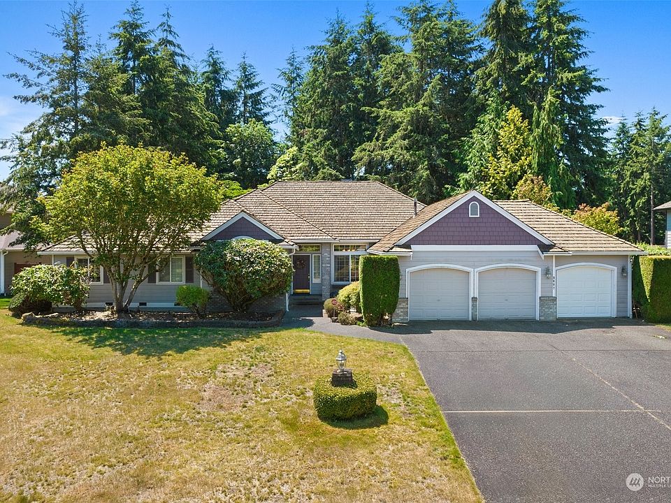 Welcome to The Estates at Ridgeview! This fantastic 2546+/- SQ FT rambler sits on nearly a half acre. The spacious kitchen opens to a family room with a stone gas fireplace, built-ins, and T&G ceiling. This home boasts a formal dining & living room with double-sided gas FP, vaulted ceilings, wet bar, and large laundry room with W/D. The expansive primary suite is light and bright, with an ensuite and W/I closet. Three additional bedrooms offer ample space and storage. The parklike, fully fenced backyard includes a pond, outbuildings, and plenty of room to play, garden, or entertain. Plus, there is a three-car garage for all of your toys or storage. Perfect location close to all amenities and JBLM.