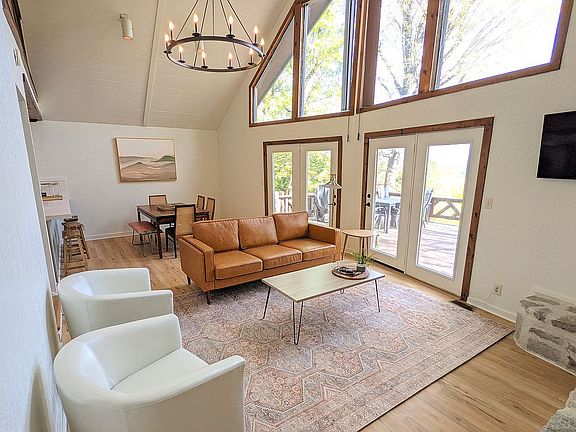 Beautiful turnkey modern lake cabin with water views! Newly renovated in 2021. 2 bedroom/2 bath plus a loft. The spacious primary bedroom is located downstairs with the 2nd bed/bath up. Airy kitchen with plenty of cabinet storage and new unique concrete countertops. Open concept living room and dining room feature towering windows framing a gorgeous view of Lake Tenkiller. Walk out from the great room onto the large front deck where you can enjoy plenty of evening shade. Located just around the corner from Finn & Feather and Soda Steve's. Within walking distance to dock approved cove! Previously used as a successful vacation rental. Fully furnished option available. VRBO 2271070