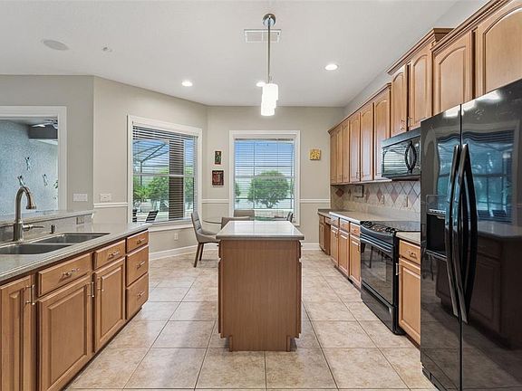 Welcome to this 4-bedroom, 3-bathroom home located in the North Shore Golf community. Offering 2,436 square feet of living space, this home blends everyday comfort with stylish finishes and tranquil outdoor living. As you step inside, French doors open to a versatile flex room perfect for a home office, gym, or playroom while a formal dining room sits just across the foyer, ideal for entertaining. The open-concept layout seamlessly connects the main living areas, creating a bright and inviting atmosphere throughout. The spacious kitchen features generous counter space, a breakfast nook with views of the pool, and overlooks the living room, allowing you to stay connected with family and guests. Sliding glass doors lead to a screened lanai that opens to a private pool area with peaceful water views perfect for relaxing, entertaining, or enjoying the Florida sunshine in your own backyard retreat. The primary suite offers a spacious and private escape, while three additional bedrooms provide ample room for family or guests. Three full bathrooms ensure convenience for everyone in the home. Home is just minutes from Publix at Cornerstone at Lake Hart and Innovation High School and easily accessible to Lake Nona's Medical City, USTA, Orlando International Airport and Lake Nona shopping and dining.