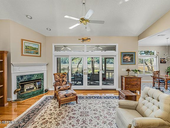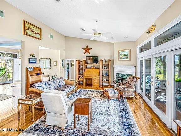 3-5 minute boat ride to deep water. Enjoy stunning sunset views, superb backwater fishing, boating, shrimping, crabbing or paddle boards and kayaks off your 440+ft.dock bridge. Dock includes stationary and floating dock with water and electric options. Main floor is a light and airy open split plan with high ceilings, hardwood oak floors in main areas and nature's views through out. 3 bedrooms (one currently a study) and 2 full baths , spacious foyer, dining room, great room, open kitchen and breakfast room, screened porch, open deck and laundry area are on the main floor. Upstairs includes a bedroom, full bath, 2 closets, a hardwood oak floor craft or workroom area as well as access to a large walk-in (13.5 X15')closet. Recent updates: Hot Water Heater 2024, HVAC 2023, Roof 2020, Master and guest bath 2020, Kitchen 2018. This smoke-free, pet-free home has stayed high and dry. Very convenient to island, I-95 and Jacksonville International Airport.