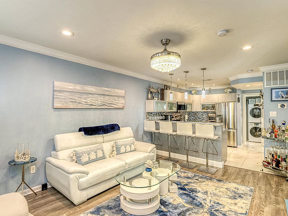 Just one block from the beach, 9609-13 Pacific Ave Unit 5 offers the perfect blend of comfort and convenience in an ideal Margate location. This inviting 3-bedroom, 2-bath condo features a thoughtful layout designed for easy beachside living. The home is finished with tile flooring in the kitchen and luxury vinyl throughout the rest of the property, creating a sleek and durable foundation. The bright, open living area flows seamlessly into the modern kitchen, complete with bar seating for four, a separate beverage cooler, contemporary lighting, and an in-unit washer and dryer. The updated bathrooms continue the clean, modern aesthetic with fresh tile work and upgraded shower fixtures. One of the bedrooms opens directly onto a private deck—perfect for morning coffee, evening cocktails, or entertaining—while the remaining bedrooms offer generous closet space and a warm, inviting design. Ideally situated near Margate’s best restaurants and attractions, you’ll be just moments from Lucy the Elephant, The Greenhouse, Tomatoes, and many more popular spots. Beautifully maintained and steps from the sand, this condo provides everything you need for effortless beach living.