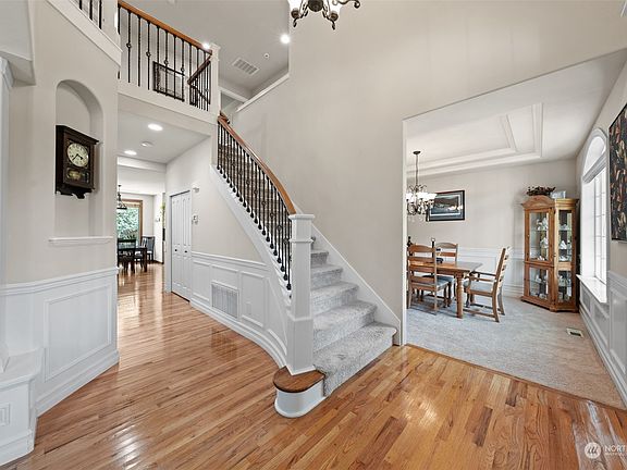 Discover this exceptional home offering nearly 3,800 sq. ft. of refined living on over half an acre. Conveniently located minutes from Highway 2 and the Evergreen State Fairgrounds, this residence features four bedrooms, including two luxurious primary suites. One suite is thoughtfully configured as a guest apartment with its own kitchenette and living area. Enjoy formal and informal living spaces, a media room, and a gourmet kitchen with a butler's pantry. Recent upgrades include new exterior paint, a newer roof, a state-of-the-art HVAC system, and generator wiring. The beautifully finished owner's suite boasts a 5-piece bath and expansive walk-in closet. Outside, a fenced backyard, covered patio, and elegant finishes complete this home.