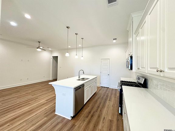 Estimate completion date: complete and ready to move in Dawson Bluff Townhomes is an Alvarez Construction exclusively built townhome community. Conveniently located in Baton Rouge near the Mall of Louisiana, Dawson Bluff Townhomes will feature 241 townhome sites. The community will have a gated entrance, exit, and a community pool. There will also be pathways that run alongside the property that will be 12 feet wide and 14 miles long, the path will go to the Mall of Louisiana, the Baton Rouge General, and many more places of business in the area. Dawson Bluff will be under an HOA company that will oversee the gate maintenance, the lawncare for the green spaces, the maintenance of the pool, the upkeep of the landscaping, and the maintenance of the utilities in the common areas. The HOA will also feature a board of directors, the monthly fee will be $145 per month. All homes include a WiFi-enabled SmartHome management hub with a wireless security system and exterior security camera. Three months of alarm monitoring is included. Homes include a WiFi-enabled garage door, and wireless smoke/heat combination detector. This floor plan is a 3bed/2bath single-story townhome offering an open concept living area with 10’ high ceilings. The living room is open to the kitchen which has a formal dining room attached. The kitchen features a large island, GE stainless steel appliances, a 4 burner cooktop with a separate wall oven, and an attached pantry. The private master bedroom has an en-suite bathroom with dual vanities, a garden tub, WC, and a walk-in closet. The kitchen and bathroom will both include 3cm granite counters. LVT floors and oversized ceramic throughout the home with carpet in the bedrooms. Included upgrades: 3cm granite countertops throughout, vinyl flooring in all common areas, tankless water heater, level 1 tile in all wet areas, crown molding in all common areas & custom cabinetry