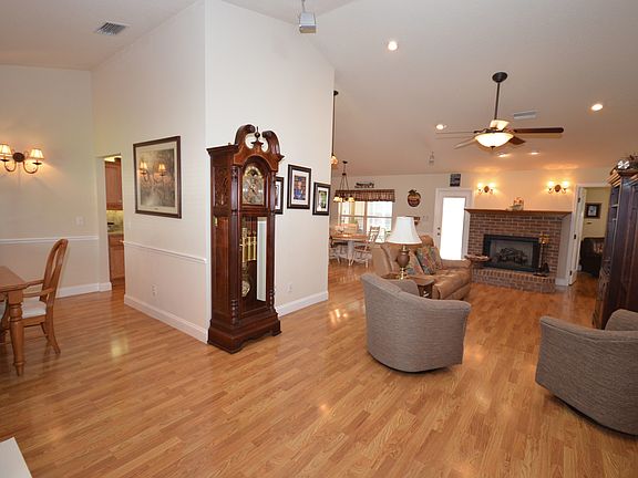 Pride in ownership shows in this exceptional home. When you walk through the front door the true beauty of this home will immediately capture your attention. The spacious open floor plan with vaulted ceiling and generously sized rooms ensures that you will never feel as though you lack for space. Upon entry, the Foyer opens to the Great Room with gas fireplace, with Library/Office beyond, and Formal Dining to your left. The Kitchen has Maple cabinets with crown molding and upper & lower cabinet lighting, beveled countertops, and opens to the informal dining area. A spacious Master Bedroom Suite is located on the left side of the home. Two Guest Bedrooms and Guest Bath are located on the right side of the home. A large Lanai under roof extends under birdcage and offers serene views out back. Home boasts crown molding & chair rail molding, planter shelf, wood window blinds throughout, inside laundry with large pantry, 10x16 out building, oversize 2-car garage, and MUCH, MUCH MORE!