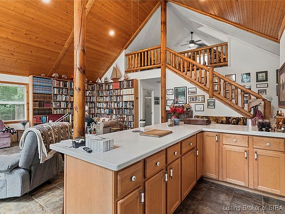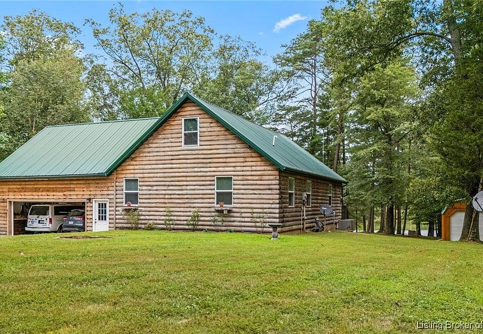 Enjoy lake living with part ownership and full use of the water, offering year-round recreation and scenic views. This is a two-parcel listing, at over 4.4 acres. The home blends rustic charm with modern comfort, featuring log veneer siding styled like a true log cabin with real half-log siding alongside traditional finishes. Inside, you’ll find oak-wood ceilings, ceramic tile floors throughout the kitchen, dining, and living areas, recessed lighting, and two stairways leading upstairs, including one to the loft with custom-built bookshelves. The spacious owner’s suite offers a soaking tub, a deep walk-in closet, and a private bath, while a large laundry room adds extra convenience. An oversized garage provides a huge tool and workshop space, and outside, the deck overlooks the beautiful waters with plenty of land and space to enjoy nature and privacy. You get a nice dock on the lake, and these two lots do convey with them a nine-foot Stuart sailboat as well as the option of a zero-turn mower.
