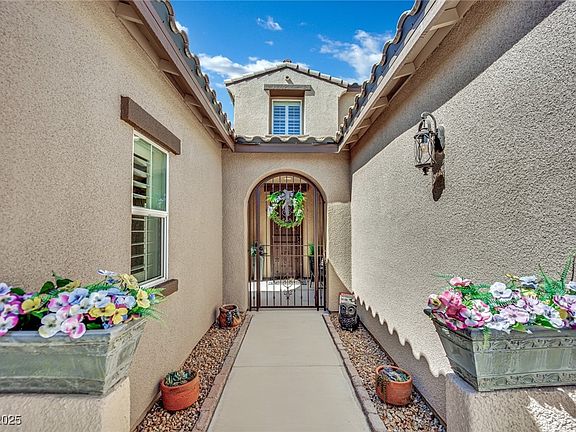 This beautifully designed home is located in the highly desirable gated community of Granada Palomar in Summerlin West of Las Vegas. Totaling 2,195 sf, this spacious & well-appointed residence offers 3 beds/3 baths in the main home, plus a private detached casita with its own bed & bath, perfect for guests or a home office. The primary suite located on the 1st floor & features dual vanities & a custom-designed walk-in closet. Upstairs, you’ll find 2 additional bedrooms connected by a Jack-and-Jill bath, each w/ access to a shared balcony offering scenic mountain view ideal for enjoying an evening sunset. The kitchen is fully equipped with all appliances, granite countertops, & a center island, seamlessly connecting to the Great Room. Step outside to your private backyard oasis, complete w/ mature landscaping & a sparkling swimming pool perfect for entertaining or relaxing in the SW sunshine. Don’t miss your chance to own a home in a sought-after community in Vegas! Buyer Verify all.