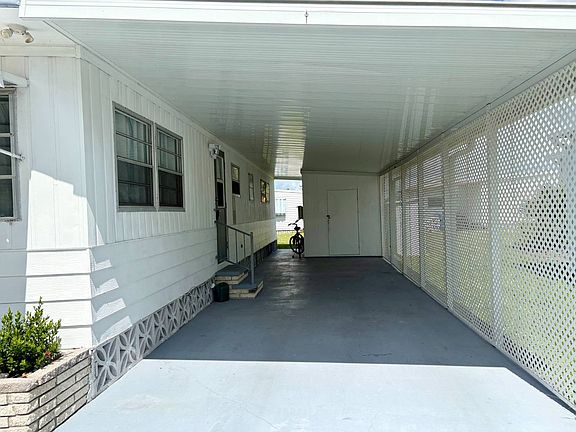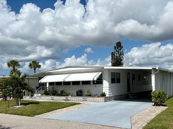 Welcome to 961 Antigua E., a beautifully maintained and fully furnished 24 x 44 home nestled in the sought-after resort-style community of Bay Indies. Designed for residents aged 55 and over, this vibrant neighborhood is quickly becoming a showcase destination, highlighted by the addition of a brand-new, state-of-the-art third community center. The serene setting features three picturesque lakes teeming with waterfowl, and a graceful resident swan that adds a touch of charm and elegance to the tranquil surroundings. Whether you're enjoying a leisurely stroll or simply soaking in the natural beauty, the aesthetic ambiance of Bay Indies offers a peaceful and enriching lifestyle. As you approach a paved path leads to a charming covered porch-perfect for enjoying the fresh air and watching the world go by. The fully covered carport provides both shade and privacy, thanks to the full lattice lining the driveway. Adjacent to the carport are two convenient sheds: one is equipped with a washer and dryer, hot water heater, utility sink, and shelving while the second shed offers ample space for tool storage. Entering inside, you're greeted by an L-shaped kitchen equipped with all major appliances, a seating counter ideal for quick meals or casual laptop use, a tiled backsplash, double sink, and a pantry. The layout is thoughtfully designed with abundant counter and cabinet space, making meal prep and storage a breeze. Adjacent to the kitchen, the dining area features a built-in server with overhead cabinets and ample space for a table that seats six. Flowing into the spacious living room, you'll find a leather electric reclining sofa, double-seated recliners, and additional two single occasional chairs. Numerous windows span the room, bathing it in natural light and enhancing the open, airy feel. Throughout the home, beautiful vinyl plank flooring and five ceiling fans for comfort and optimal air flow. This home offers two ensuite bedrooms, each designed for privacy and convenience. The guest suite includes a queen sleigh bed, a bank of eight built-in drawers between two closets, and a bathroom with a corner tub/shower, double linen cabinet, and vanity. It also features a second entrance off the hall, perfect for visiting friends. The master suite boasts a king bed, a built-in dresser between his and her closets, an additional third closet, and an ensuite bath with a newer tiled walk-in shower and vanity. Recent upgrades include a 2022 hot water heater and A/C units, and the roof is regularly coated for added durability. Off the living area, an enclosed lanai offers a peaceful retreat with newer plexiglass windows, screens, and curtains. The view from the lanai is a tranquil blend of palms and oaks, with no homes obstructing the view-just nature and serenity. Why Wait? This home is move-in ready and packed with value. Whether you're looking for a seasonal retreat or a full-time residence, this gem won't last long. Don't miss your chance to make the move to paradise! Take advantage of many appealing amenities to stay active with miles of walking and biking trails, three heated pools with hot tubs, tennis, pickleball, bocce, shuffleboard, and a kayak launch. There are a number of clubs, card games, bingo, trivia, concerts, organized dinners and activities if you prefer more tranquil living. Venice is just a few miles away with cultural events, concerts, fishing, boating, golf and beautiful beaches plus search for shark teeth. Venice is known for many restaurants, shopping and near 3 airports. A casino in Tampa and the Tiger Woods Pop Stroke 2 course putting greens in Sarasota are a must. All listing information given to us is considered appropriate and reliable but should be independently verified through personal inspection by appropriate professionals. Home must be maintained to the Community Prospectus. The lot rent is determined by the Community office and covers all amenities offered including property taxes and lawn maintenance.
