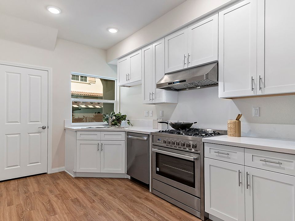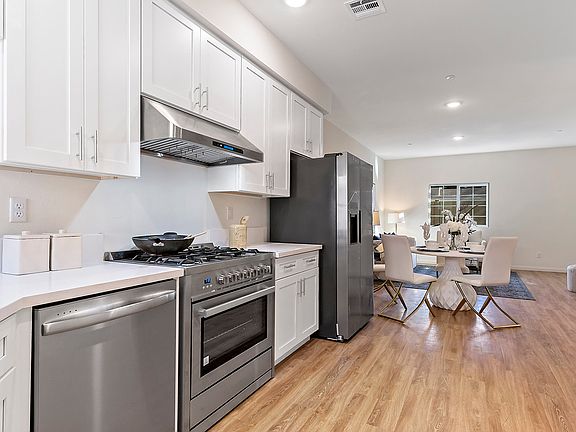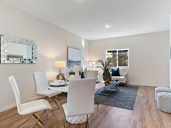Absolutely Gorgeous AWARD winning Townhome located in beautiful Pomona! Builders received a construction award and a Congressional Recognition award in 2022 for this beautiful project. You will admire the open floor plan with beautiful laminate flooring as you enter this luxurious home. Lots of windows to bring in natural lighting. One bedroom downstairs for guests or mother-in-law quarters with sliding closet doors. Entertain guests in the open-concept family room and Kitchen area. Custom white kitchen cabinets complimented with gorgeous white quartz countertops. Upgraded stainless steel appliances will be provided in Unit 1 only. Enjoy a large walk-in pantry. The Stairway is covered with upgraded neutral carpet through the hallway and portions of the second floor, including all bedrooms. Located upstairs, you will find a large loft that can easily be used as a bedroom, Playroom, or Home Office. The grand Master bedroom leads to a cozy balcony area to relax and enjoy coffee. The third bedroom is spacious, with sliding closet doors. Alarge enclosed laundry room is conveniently located on the second floor. The enclosed two-car garage leads directly into the home. Solar panels are built into each location to alleviate electrical cost. Water and Trash are included. These beautiful townhomes are located across from Alcott Elementary school and minutes from Costco and Sam's Club and 20 minutes from Ontario International Airport, Kaiser Hospital, various restaurants, breweries, and Cal Poly Pomona. AcroYou will not find a better, newly constructed home in the area. Please see the virtual tour for additional information. Photos are from stages unit. Unit will not have any furniture. These photos were from unit #1.. Photos are not from actual uni** ALl units have similar layout but some minor variations.