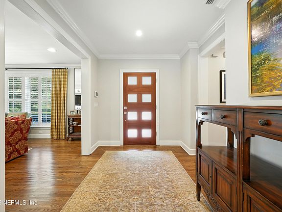 Completely renovated only ten years ago, this solid concrete block 4BR/3BA home combines timeless design with modern comfort. Hardwood floors flow throughout the open and split-bedroom floor plan filled with natural light. The chef's kitchen features a Wolf gas range, oversized storage island, and seamless connection to the family and breakfast areas. The primary suite offers a beautiful bathroom with walk-in shower and spacious walk in closet w/customized built-ins. Outdoor living shines with a tiled patio and wall fountain, screened porch with summer kitchen, and an open patio with gaslit fireplace. Gated entry, full house 20kw GENERATOR, circular drive, professional landscaping, and oversized climate-controlled garage complete this exceptional home. Easily stroll into San Marco Square for top tiered restaurants and bars, boutiques, quaint book store and live theatre. The ambience & charm of the neighborhood is one of Jacksonvilles most desired celebrating 100 years in 2025.