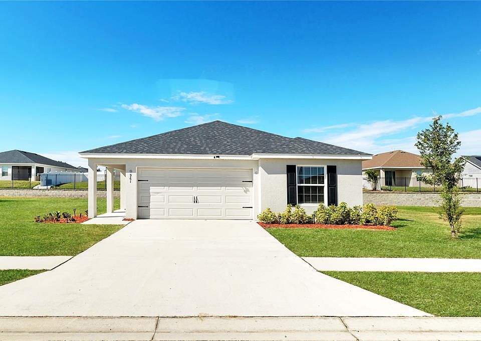 Discover this stunning 4-bedroom, 2-bathroom Highland Homes Peyton model in the desirable Lakes 2 community! This lovely home features an open-concept layout with high ceilings, granite countertops, stainless steel appliances, and a freshly painted interior. The spacious primary suite includes a walk-in closet, and the home sits on the largest lot in the neighborhood (70 ft wide). Additional highlights include a 2-car garage, low HOA, and a quiet community setting with a nature preserve. Conveniently located between Lake Haines and Lake Rochelle and just minutes from I-4 for easy access to Orlando, Tampa, shopping, and dining.