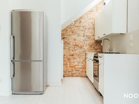 Exposed brickLaundry in buildingVideo intercomHigh ceilingsStainless steel appliancesHardwood floors