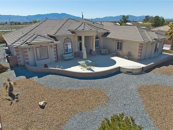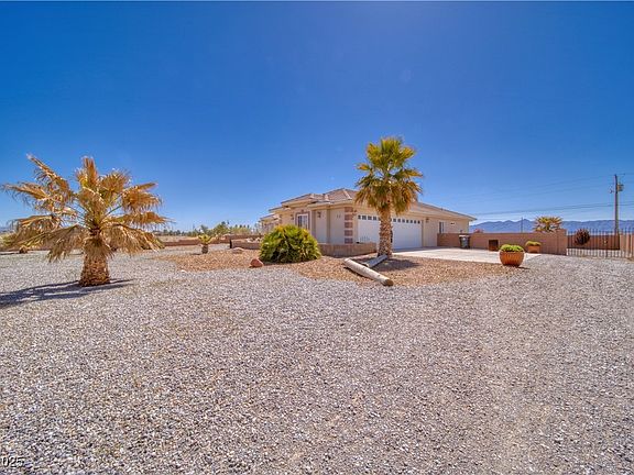Spacious 4-bed, 2.5-bath home on a large 2/3 of an acre lot with stunning mountain views and no HOA! This 2,696 SF home features vaulted ceilings, a bright open layout, and plenty of room to entertain. Plantation shutters on windows, newer AC, Stainless Steel appliances, granite counter tops in kitchen, Ceiling fans throughout, end of cul-de-sac location! Enjoy indoor-outdoor living with a wraparound patio and expansive outdoor space—perfect for relaxing, gardening, or bringing your RV and toys. Located in a quiet Pahrump neighborhood, this property offers privacy, space, and endless potential in a peaceful desert setting. A must-see!