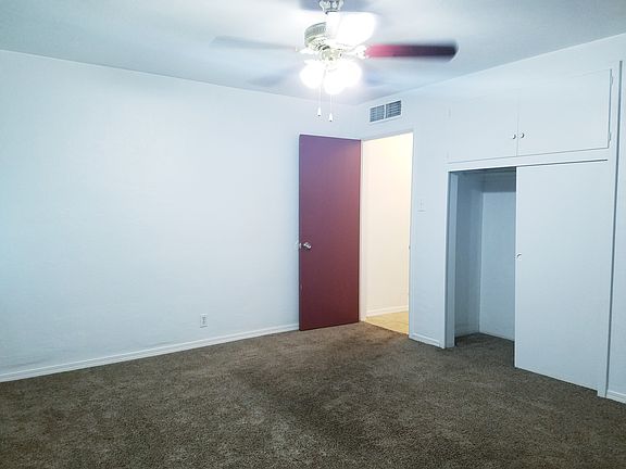 This two-bedroom, one-bathroom residence near the Tower District offers comfortable living with central air and heat. The home includes a 2-car detached garage, plenty of street parking, and convenient washer/dryer hookups. The kitchen is equipped with a stove and refrigerator. It is the front unit of a duplex but feels and is set up like a single residence. New carpets, new curtains, and new paint.