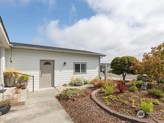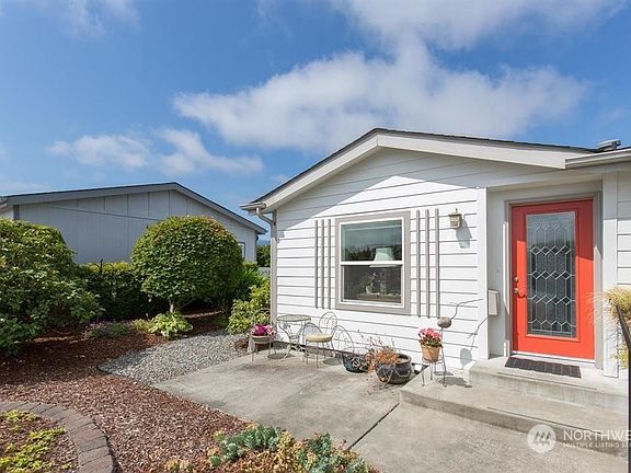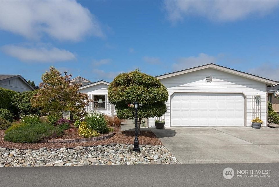 Beautifully maintained 2 bedroom, 2 bath home in desirable Clasen Cove. Well designed with open concept living and guest quarters and primary bedroom suite separated for additional privacy. Roomy primary bedroom with separate den / office and walk in closet. Tiled primary bathroom with double sinks. The bright & spacious kitchen has an island, pantry, plenty of cabinet and countertop space and an abundance of windows that look out to the beautifully landscaped yard. New Heat pump 2022. Age minimum 55 plus. Outside you have a nice relaxing area to take in the beautiful mountain views with raised gardens for convenient growing of veggies! Oversized garage has shelving, a work bench, pull down ladder and a utility sink.