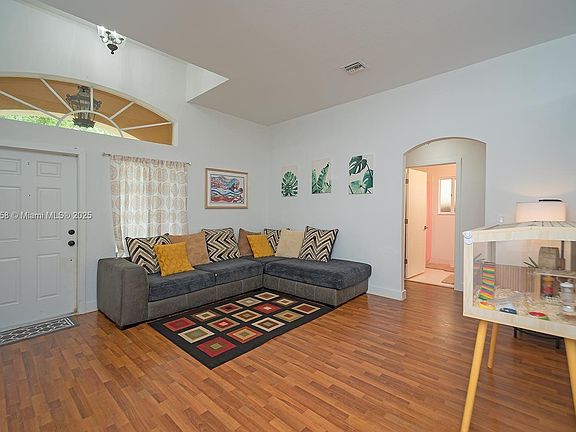 Stunning 4 bedroom, 3 bath home with double garage located in a beautiful, quiet, and safe neighborhood. This property also offers a Florida room, living room, dining room, and spacious bedrooms with closets and natural light. A private yard of considerable size ready for a pool with fruit trees and more! The community is surrounded by lakes, water fountains, and green areas with many walking paths. Gym is included, as well as an impressive clubhouse with a huge pool, party room, and very secure gated and strict entrance.