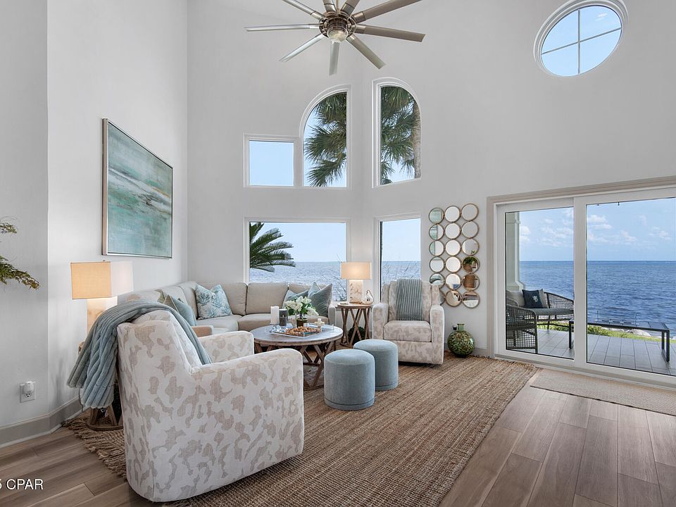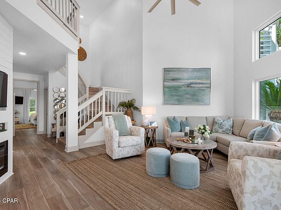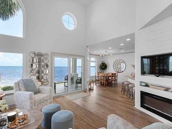 BAY FRONT ELEGANCE & TURN KEY in Sandestin. This short term piece of paradise is a 3 Bedroom 3 bath Designer Home . Discover the perfect blend of comfort, style, and waterfront living in this stunning property located in the small exclusive community of Northshore. Thoughtfully decorated by a professional designer, this residence is updated and offers a warm inviting atmosphere ideal for families and entertaining alike. Soaring high ceilings, spacious open-concept living and large windows that fill the home with natural light and frame picturesque views of the bay. Each bedroom is generously sized providing ample space and privacy for family and guests. The primary suite offers a serene retreat with spectacular views. Enjoy your morning coffee on the patio and end each day with drinks and breath-taking sunsets over the water.Located in the sought after Sandestin Golf and Beach Resort, you'll have access to world-class amenities, dining, golf, and white sand beaches-all just minutes away. This beautifully curated bayfront home is move-in ready and waiting for owners to make it your own coastal haven. Recent upgrades include:high impact windows, new flooring throughout, new light fixtures, ceiling fans, updated kitchen cabinets, new range and refrigerator, HVAC and wall fireplace. Not presently on a rental program but can be rented Fees $410.00 per month North Shore HOA & $472.10 per Quarter to Sandestin Home Owner's Association (SOA).Storage outside front door.
