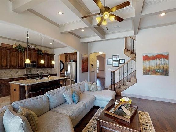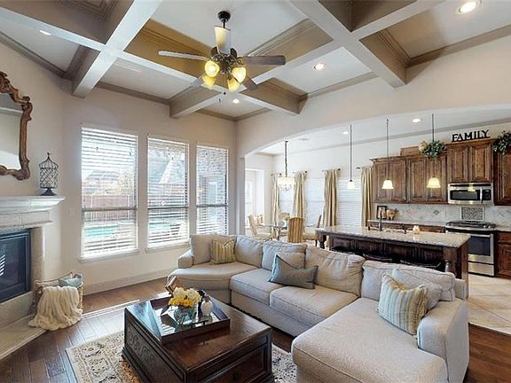 Gorgeous 1.5-story Megatel home in Lakes of Prosper with immaculate landscaping and beautiful brick and stone elevation! Inside you will find 4 bedrooms, 2.5 baths, formal dining area, upstairs game room, and 3-car oversized garage! Study makes a terrific 4th bedroom! All bedrooms located on 1st level! Upgrades include extensive crown molding, decorative light fixtures, gorgeous hand-scraped hardwood flooring, cozy family room FP, and much more! Gourmet kitchen overlooking the spacious family room boasts custom wood cabinetry, granite countertops, tumbled stone backsplash, SS appliances & gas cooktop. Large backyard oasis with covered patio, fire pit & sparkling pool is the perfect space to grill and entertain!