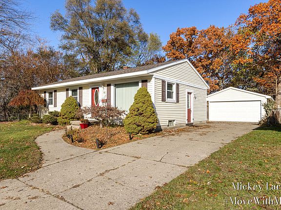 This is the one! Professionally-finished basement. Custom kitchen cabinets (matching custom table & chairs stay!). Fenced-in backyard backing to woods and cul de sac in front make it as private as it gets in the city. Finished extra-deep fully-insulated garage with storage above and a large, clean lean-to workshop with electricity. Walking distance to expanding Wyoming trail system. Solid, stylish, and well-maintained...this one checks all the boxes!