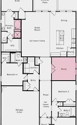 - Features: Breakfast Bar, Kitchen Island, Kitchen open to Family Room, Pantry, Walk-in Pantry