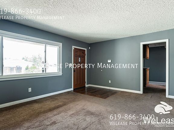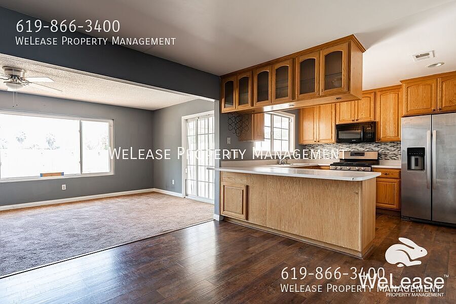 3 bed 2 bath home in Santee! Open spaces make this a well-illuminated home that features a kitchen with a great amount of space for storage in cabinets, wooden floors in the dining area, and carpet through the bedrooms. The enclosed patio and spacious, fenced back yard are perfect for entertaining or enjoying family time. Attached garage and additional parking space in the driveway. Professionally managed by WeLease. 2 DEPOSIT: 1 month's rent APPLIANCES: refrigerator, stove, microwave, dishwasher, washer/dryer hook ups AIR CONDITIONING: NO UTILITIES INCLUDED: none, all resident responsibility PET RESTRICTIONS: Pet rent is $35 per pet If you are applying with an emotional support animal or service animal, please provide the corresponding documentation. AVAILABLE: Now RENTAL CRITERIA -Credit score must be 620 higher -Collective household income 2.5 times the monthly rent -No prior evictions. -No balance owing past or present to: Utility company, property manager. -No excessive late payments to previous landlord or on credit report. -No recent criminal activity within the past 6 years. -Security Deposit is required to be paid in full within 24 hours of receiving approval notification. -You must be willing to start lease within 14 days of property being available. - Co-signers & Guarantors must meet the same income requirements with no prior negative payment history and have a credit score in excess of 700. MUST SUBMIT DOCUMENTS WITH APPLICATION: 1. Each applicant must submit the online application and pay the $45 non-refundable application fee. Complete all fields in application. 2. Copy of current government issued ID. 3. Proof of verifiable income for each applicant. (NO screenshots accepted) - If employed, copy of last 2 paycheck stubs containing year-to-date info. - If starting job, a copy of your employment agreement/offer letter - If self-employed, copy of prior two years tax returns and business bank statement for the previous 3 months (each document must include all pages). - If retired, proof of retirement income such as social security, disability, liquid assets, personal savings/bank account, or stocks. Copy of last 3 months of bank statements. 4. 2 years of rental history for each applicant. Must provide contact information, including phone number and email for landlord. 5. Pets photos of all pets/animals. Property may require a pet rent or deposit. ESA/Service animals: must submit supporting documentation. START LEASE & MOVE-IN PROCESS Resident is responsible for $100 lease preparation and move-in, this fee must be paid prior to resident move-in date. RESIDENT BENEFITS PROGRAM The Resident Benefit Program is designed to provide convenience to our residents by providing several services and liability protections which satisfies the renters insurance requirement, plus additional benefits. The tenant will be billed $45.00 monthly for the Resident Benefits program. Coverage and Benefits: All tenants are required by their lease to carry property damage liability coverage. This program satisfies the renters insurance requirement. Residents receive the benefits of the coverage without additional applications, credit checks, or billing *False information on an application is cause for immediate denial, and grounds for tenant termination if a lease has been executed. *Federal & California Fair Housing Laws are observed by WeLease. Driveway Parking Fenced Backyard None All Tenant's Responsibility Patio Area Pet Rent Washer/Dryer