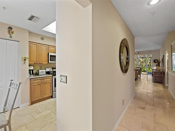 AVAILABLE NOV. & DEC.2026 - RENTED JAN., FEB., MARCH, APRIL 2026: AVAILABLE OFF-SEASON: EXCEPTIONAL GROUND FLOOR UNIT, an immaculate and updated vacation condo at Stoneybrook G&CC offers all the amenities you would want for a few months in the sun. The well-equipped kitchen has a breakfast nook with view of front lanai, SS appliances, and lots of cabinet space. The dining area is open to the living area and the enclosed rear lanai features floor-to-ceiling sliding glass doors and provides year-round use and the ability to open the unit to the outdoor private preserve. There is a King bed in the master bedroom, a desk workspace, an en-suite bathroom, and a walk-in closet. There are twin beds in the 2nd bedroom with an adjacent guest bath. There is a large TV in the living area and a TV in the master bedroom. The one-car garage provides space for beach chairs and umbrellas for the occasional trip to the beach. The Fairway Veranda community pool is a short distance from the front door and features a screened-in sitting area and bathroom. The golf membership transfers if desired for a fee (check with the clubhouse for cost) giving the guest access to Stoneybrook G&CC amenities including an 18-hole premier Arthur Hills designed golf course, 4 lighted Har-Tru tennis courts, a heated pool, hot tub, and fitness center. The recently redecorated clubhouse offers fine and casual dining and take-out service. Stoneybrook is a gated community conveniently located on Palmer Ranch close to the world-famous Siesta Key Beach. The Legacy walking and biking trail access is right outside the front gate, there is a Costco nearby, shopping, banks and restaurants What an opportunity to immerse yourself in the Florida lifestyle in this delightful retreat.