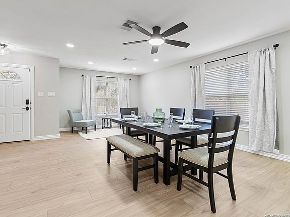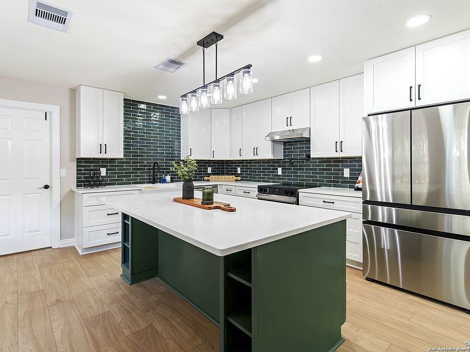 Home appraised $25,000 over list price! Welcome to 9611 Echo Gap, a beautifully remodeled 4 bedroom, 2 and half bath home, located on a cul-de-sac on the northwest side of San Antonio, Texas. This residence has been thoughtfully upgraded throughout, offering modern finishes and timeless style. Inside, you'll find seamless waterproof plank flooring, new light fixtures, oversized custom baseboards, and ceiling fans in every bedroom and living space. The kitchen is a true showpiece, featuring custom cabinetry with 42-inch uppers, an oversized island, seamless quartz countertops, and an Italian ceramic tile backsplash. A pot filler above the range, a fireclay farm sink with a touchless Delta faucet, and a complete set of new Samsung appliances make this space both functional and stylish. The primary suite is designed as a true retreat, highlighted by custom french doors to the ensuite, with a standalone soaking tub featuring a waterfall faucet, leading into an oversized shower with three shower heads surrounded by oversized luxurious tile and glass with a mosaic marble floor. A double vanity with Delta faucets, ceramic tile flooring, and a Kohler toilet complete this luxurious space. With its combination of high-end finishes, thoughtful upgrades, and a spacious layout, this home is perfect for both everyday living and entertaining.