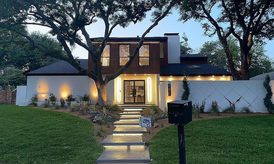 Large wonderfully maintained home in Lake Highlands. Full one year remodel with hi-end designer/Anthony Carden architect. All additions were approved by city. This 5 bedroom, 3.5 full bath home features large rooms, wood flooring, three patios and a beautiful cedar porch off the dining room with 2x large bifold doors. Marble master shower, floor to ceiling tile bathrooms,48x48 tile 1st floor, av rack, 8-8” ceiling speakers, brand new hi end appliance(dacor 42 fridge, wolf stove , Thermador microwave/oven, rift saw white oak cabinets,new roof, tankless water heater, new Plubming, added 5 ton ac (11tons total),steel entry door, garden underneath white oak stairs, taj majal quartzite,rift sawn white oak built ins and master closet, and backyard with artificial grass. Situated on a pie shaped lot in the elbow of the street that makes it feel like a cul-de-sac. House will be ready to show May 29th. Architecture Renderings 3d can be viewed: https://kuula.co/share/NJXhZ/collection/7qJKc?logo=1&info=1&fs=1&vr=0&zoom=1&sd=1&thumbs=1