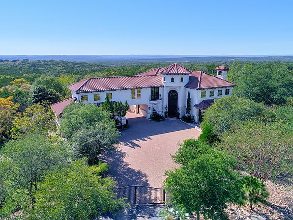 Exquisitely detailed home in a gorgeous Hill Country setting- 40+unrestricted ag-exempt acres offers unlimited potential for residence, retreat, restaurant or event venue. Grand entrance, beamed ceilings, fabulous trim/mill work highlight the detail in this unique home. Spectacular master retreat with spa like bath and his/her closets. Loft and media room plus the secondary bedrooms are up. Balcony provides amazing views! Expansive outdoor living areas feature sparkling resort-style pool, outdoor kitchen, pavilion, fireplace patio overlooks view! Barndominium has living/kitchen plus 1 bedroom/1 bath, chicken coop, aviary! Just 9 miles from Wimberley!