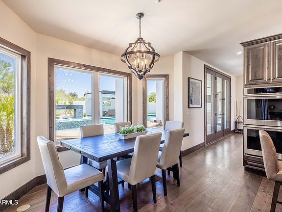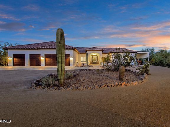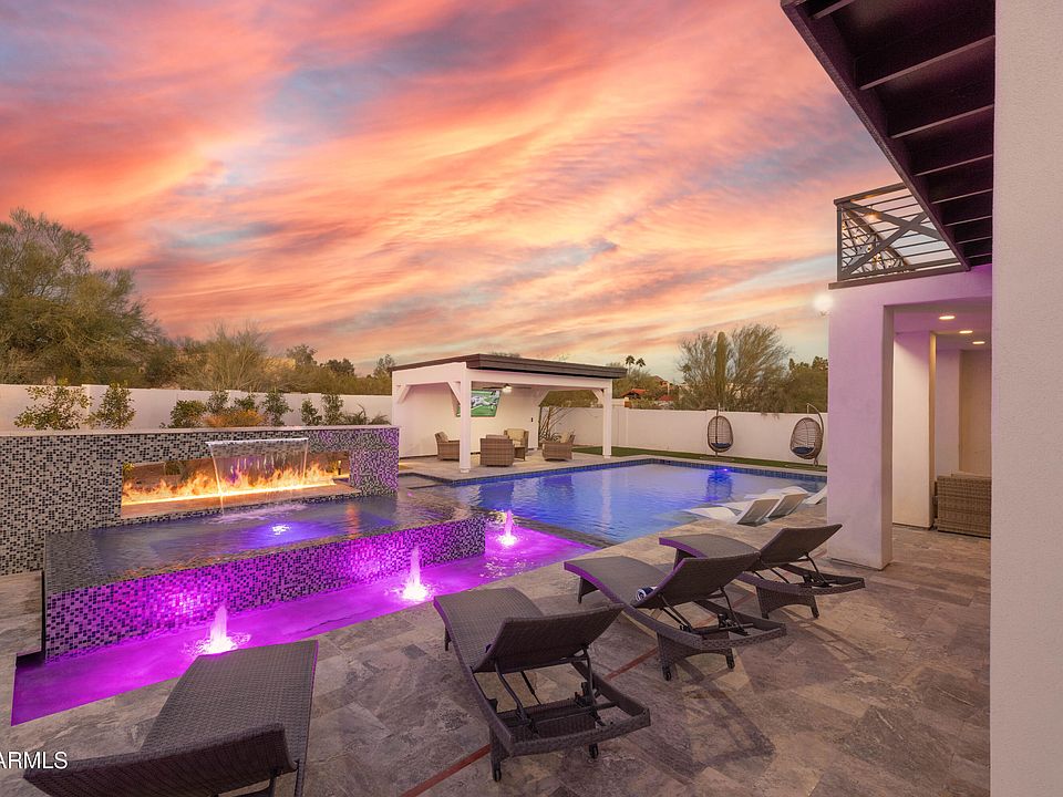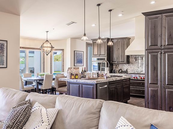 Wait until you see this amazing freshly remodeled home surrounded by the beautiful MOUNTAINS & DESERT landscape & one that aligns a lifestyle of tranquility & positive energy! The BOLD Iron entry door, vaulted ceilings, upgraded fixtures & cantera stone finishes around the fireplace truly makes a statement throughout the home. Full home theatre, Total of three Master BR's, custom kitchen features 42'' wood cabinetry, granite stone countertops, custom fan hood, built-in SS fridge, WOLF cooktop & dual ovens sure to please the pickiest of chefs. The 1350 SF detached casita features a master suite, three additional bedrooms, bathroom and kitchen area perfect for guests or as an income opportunity. The backyard features a resort style pool and landscape perfect for outdoor entertaining.