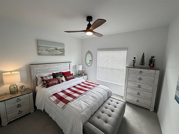 This stunning 4-bed, 2-bath single-story home features a modern split floorplan and was built in 2023 with upgraded finishes throughout. Enjoy incredibly low electric bills thanks to the solar panels, plus a spacious primary suite with a custom walk-in closet featuring built-ins. The gourmet kitchen offers a gas stove and an under-sink water filtration system, perfect for cooking and entertaining. Relax on the covered lanai with remote-controlled features, overlooking a peaceful backyard setting. This beautifully upgraded home is move-in ready and the perfect place to call home today.