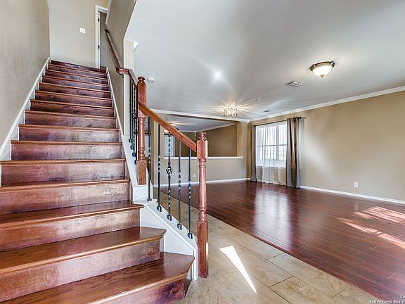 STUNNING 2 story, 2.5 bath home located in the Heart of Helotes, this BEAUTIFUL home features Controlled Access, Park/Playground Area and Sport Court. Open floor plan with updates. Granite counter tops, custom cabinets, stainless steel appliances, new dishwasher, new roof, water softener, storm doors in front & back doors, dark outside window screens to conserve energy, Laminate wood & tile floors throughout the house with exception of 2 bedrooms with new carpet. Large game room, movie room or 4th bedroom or office with walk in closet. Walk in closets throughout. Large pantry with plenty of shelves, shutters and blinds. Refrigerator in garage conveys. Newly painted large patio deck for your entertainment. Patio has celling fan. Ring door bell conveys. This Home has been professionally cleaned and is 100% MOVE-IN READY. Very close to schools, Loop 1604, FM 1560, restaurants, shopping & much more. DON'T MISS OUT! THIS GORGEOUS HOME WILL NOT LAST!