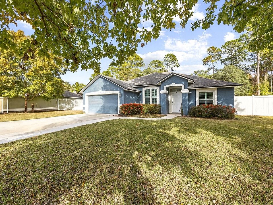 SPARKLING POOL HOME tucked away on a quiet cul-de-sac just minutes from shopping, golf, and the beautiful beaches of the Atlantic Ocean, Jacksonville International Airport, Kings Bay and Mayport military bases. This 3BR/2BA home blends comfort, charm, and convenience. Thoughtfully updated with new durable LVP flooring, carpet in bedrooms, interior paint, appliances, fixtures, fans, toilet and vanity in guest bath, plantation shutter on front, pool pump and pool decking. Screen enclosure surrounds pool and lanai, fully fenced with sprinkler, shed, lemon tree, widened drive, attic pull down stairs, and added electrical circuits in garage. Home is move in ready and full of character. The real show stopper is the screened in pool and lanai area which is perfect for barbecues or simply relaxing in peace. No CDD and low HOA fees. You will enjoy the freedom to make it your own. Opportunities like this do not last - come see why this Beachway at Nassau Lakes beauty is the perfect place to call home.