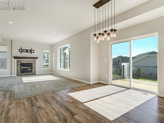 Welcome to this stunning two-story home with a walkout basement situated in the highly desirable Wolf Ranch neighborhood within the prestigious Academy District 20 school district. This spacious and thoughtfully designed residence features 5 bedrooms and 4 bathrooms, perfect for growing families or those who love ample space for guests and entertainment. Upstairs, you'll find the luxurious primary suite with a private bathroom that includes a double vanity, a standalone shower, and two generous walk-in closets. Two additional bedrooms upstairs, one with a walk-in closet, along with a 3/4 bathroom and a convenient laundry room, provide comfort and functionality for daily living. The main level offers a warm and inviting living room, a dining area with direct access to a beautiful deck, ideal for outdoor gatherings and enjoying the views. The adjoining family room provides extra space for relaxation, while the modern kitchen is equipped with stainless steel KitchenAid appliances, a pantry, and plenty of cabinet storage for all your culinary needs. A powder bath and a two-car garage complete this level, offering both convenience and practicality. The finished walkout basement expands your living space with a spacious family room, perfect for movie nights or entertaining friends. There are two additional bedrooms and a 3/4 bathroom, making it an ideal area for hosting guests or creating a family retreat. The recent roof replacement adds to the home's appeal, providing peace of mind for years to come. Nestled in a peaceful, friendly community with excellent schools, parks, and amenities nearby, and is move-in ready. Don't miss this incredible opportunity to own a beautiful, well-maintained property—schedule your showing today!