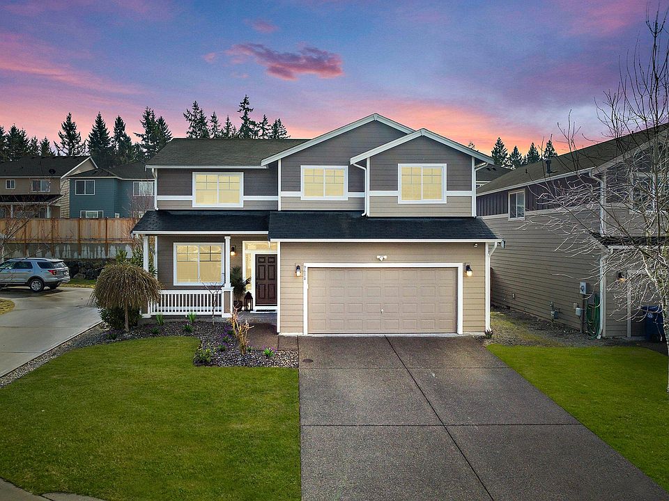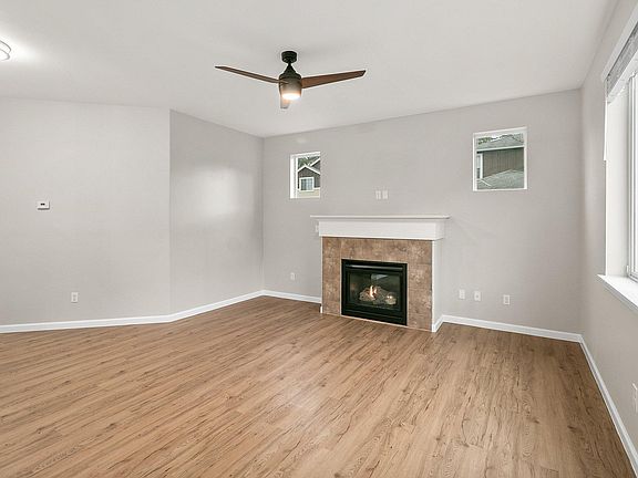 The open kitchen features a large island, stainless-steel appliances, and plenty of counter and cabinet space. Cozy up by the gas fireplace on chilly nights or entertain guests on the spacious back deck.