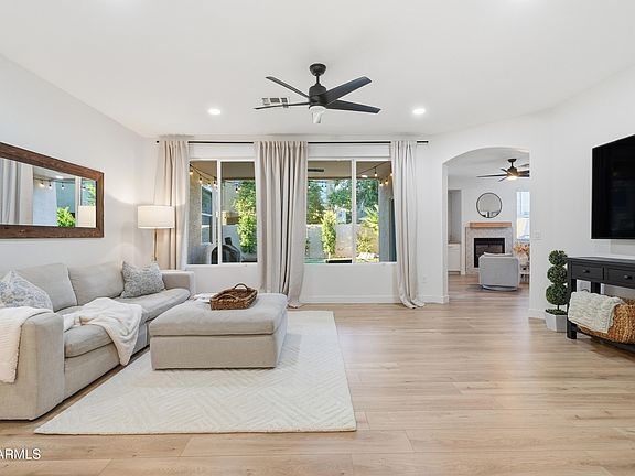 Luxury Live Auction! Bidding to start from $500,000.00! Fully remodeled, gently lived-in, single-level home in Augusta Ranch, part of the renowned Gilbert School District and home to AZ's top executive golf course. Move-in-ready with security system, new blinds, window treatments, & luxury vinyl plank flooring. The gourmet kitchen boasts custom cabinets, gorgeous hardware, subway tile backsplash, & new SS appliances. Cozy living room with designer tile fireplace & bar area. Spacious primary suite with en-suite, dual sinks, & spa-like walk-in shower. Flex room with built-in Murphy bed. Large, low-maintenance yard. Enjoy community playgrounds, sports courts, paths, restaurant, & golf course. Easy access to US-60 & Loop 202, near grocery, shopping, dining & Costco.