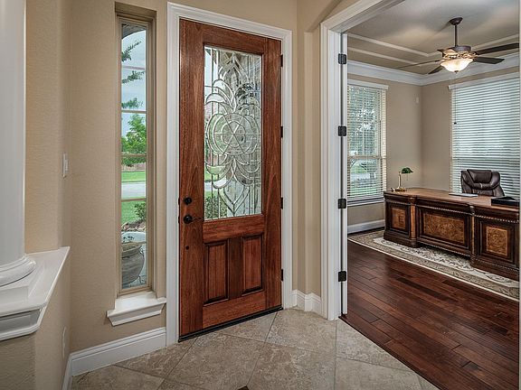 Stunning lakefront 1.5 story home located in the luxurious gated Northlake section of Gleannloch Farms. This accommodating floor plan creates great open living areas all offering a majestic view of the lake which anchors the community. Beautiful open kitchen is truly the heart of this home w/cream colored, soft-close cabinets & drawers, antiqued detail, beveled granite counters, double stainless ovens, 5-burner gas cook-top, & center breakfast bar to seat a crowd! Butler's Pantry separates the formal dining room from kitchen, & offers additional storage. Wood floors in the formal dining & study. Additional entertaining space in the sunroom, located off the family room & next to a full bath. Two secondary bedrooms are located at the front of the home with a 2nd full bath. The master suite also overlooks the lake. Enjoy a full spa experience in this master shower! Full room and 1/2 bath upstairs. Oversized garage will fit your golf cart! Pool-ready back yard. Bring all offers!